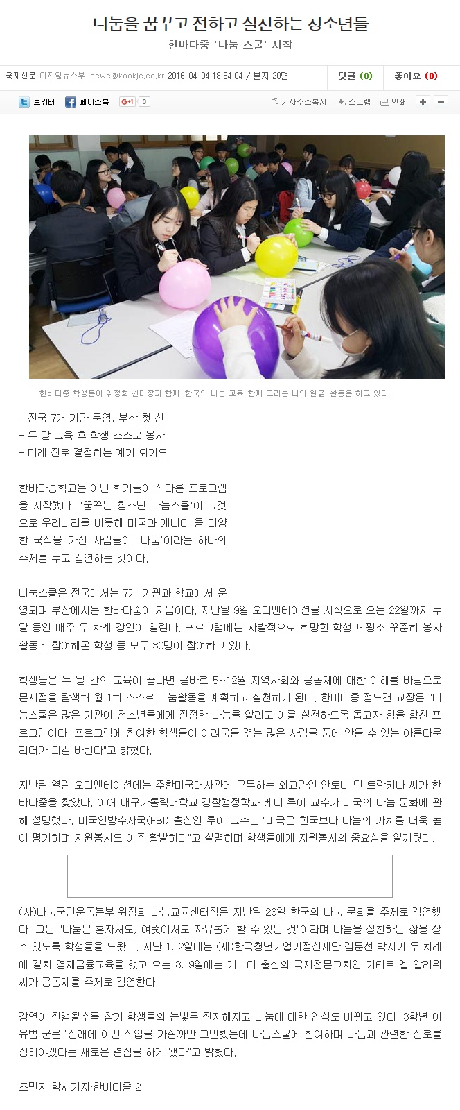 [찾아가는 나눔교육] 성남외국어고등학교 편(7.13-15)