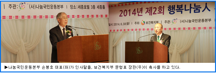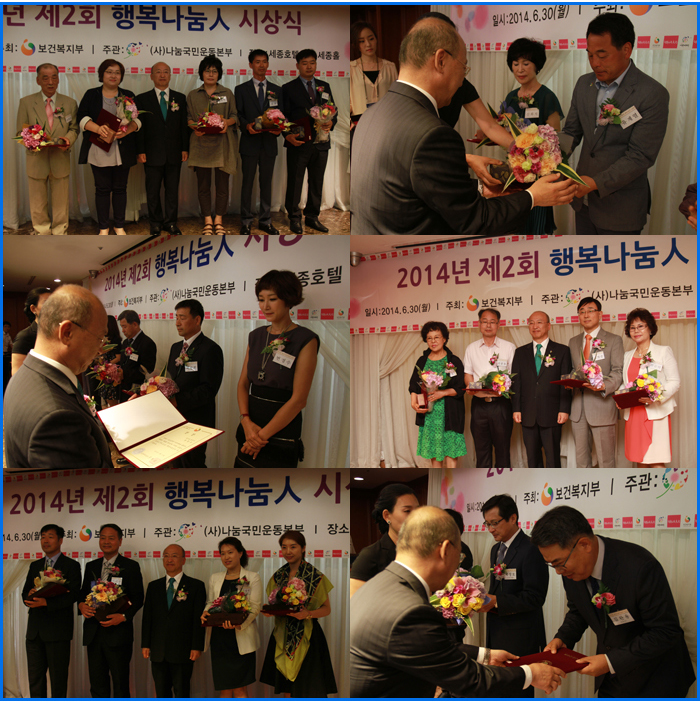 6월 30일(월) 11시 서울 세종호텔에서 보건복지부 주최, 나눔국민운동본부 주관 ‘2014년 제2회 행복나눔人’ 시상식이 열렸다.